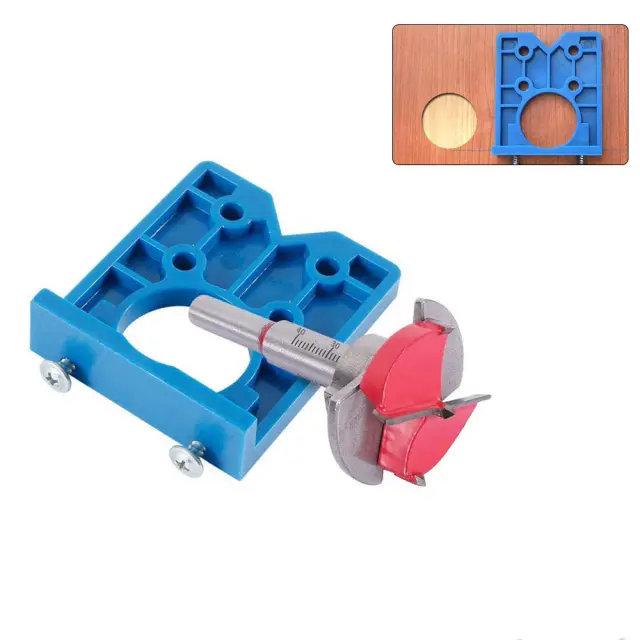 Šablona za tečaje vam pomaga vrtati luknje za tečaje na pravo mesto. Šablona za vrtanje je optimalna za pravilno namestitev vrtalnih lukenj in enostavno namestitev tečajev za pohištvena vrata. Nastavek je mogoče prilagoditi različnim pogojem. S cilindričnim svedrom (sveder za vejice) iz nerjavečega jekla.