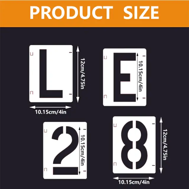 Široka uporaba: Šablone se lahko uporabljajo na kateri koli površini: lesu, tkanini, steni, plastiki, kovini, keramiki, cementu, kamnu itd. Uporabite jih za barvanje naslova na vratih, barvanje lesenih napisov, vabil, majic, umetnin ali česar koli drugega.