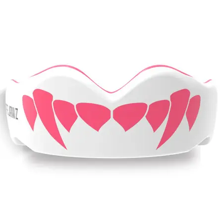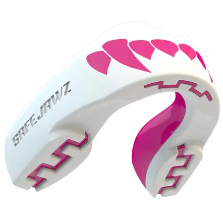 SAFEJAWZ® 'Pink Fangz' Mouthguard - Zaščita z osebnostjo. Revolucionarni novi športni ščitnik za usta, ki skozi vse svoje napredne funkcije zagotavlja zelo udobno prileganje in optimalno zaščito za VSE športe.
