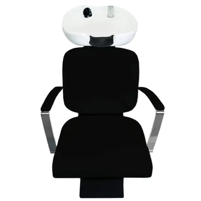 Oblazinjen sedež, nagibna umivalnica in BREZPLAČEN naslon za vrat; Zagotovite si najbolj udobno in sproščujočo izkušnjo v vašem salonu, spa centru, brivnici ali kjer koli drugje.