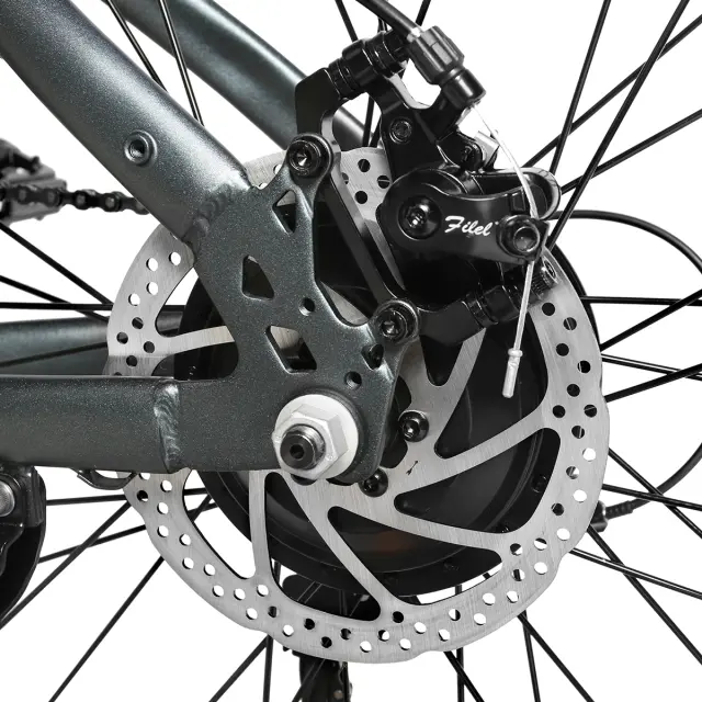 7-stopenjski menjalnik Shimano omogoča prilagodljivo prilagajanje hitrosti, kar olajša vzpone navzgor in nudi večji nadzor. V kombinaciji z vzdržljivimi pnevmatikami 26" x 2,1" to e-kolo zagotavlja stabilnost, oprijem in udobje na različnih cestnih površinah.