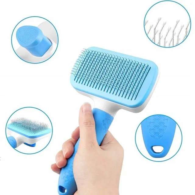 Zobje krtače imajo okrogle konice , da ne poškodujejo vašega ljubljenčka med krtačenjem in poskrbijo za prijeten in sproščujoč občutek pri masiranju kože med čiščenjem dlake.