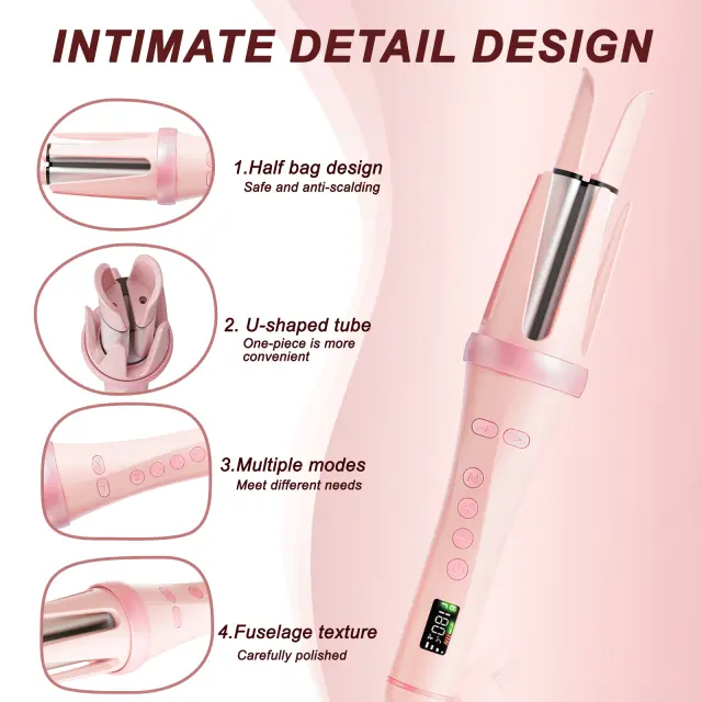 Samodejno kodranje brez napora: Ta samodejni kodralnik odpravlja ugibanje pri oblikovanju. Preprosto vstavite del las, izberite želene nastavitve časa in temperature ter pustite, da vrteči se valj brez težav ustvari brezhibne kodre.
