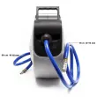 Kolut ima mehanizem samodejnega zaviranja, ki ga lahko odklenete, ko se rahlo povlečete nazaj. Sama odprtina cevi se lahko zasuka na stran, tako da se PVC tlačna cev lahko prožno uporablja v različnih smereh.