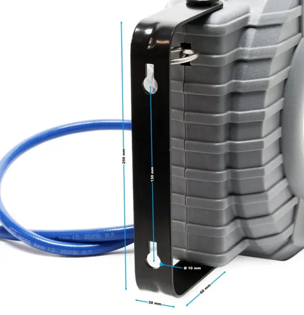 Kolutna cev je dobavljena z držalom za pritrditev na steno.