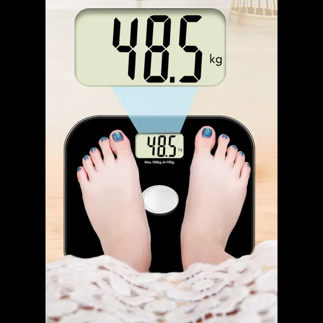 Velik LCD zaslon: Tehtnica ima velik, lahko berljiv LCD zaslon, ki zagotavlja jasne in natančne odčitke teže. Prevelike številke zagotavljajo, da lahko enostavno vidite svojo težo iz katerega koli kota, tudi v slabih svetlobnih pogojih. To je še posebej koristno za tiste z okvarami vida ali za vse, ki imajo raje jasen in preprost zaslon. Svetla osvetlitev ozadja dodatno poveča vidljivost, kar olajša spremljanje vašega napredka.