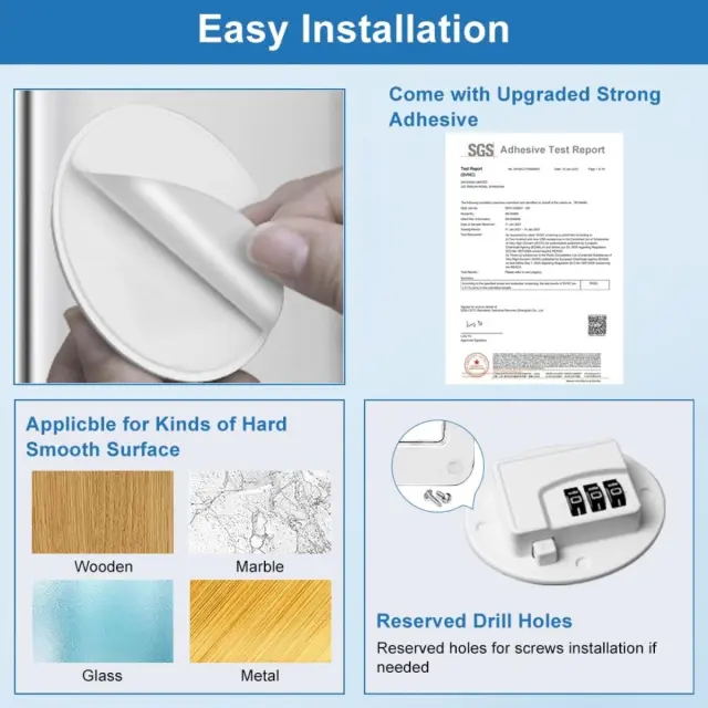 Enostavna namestitev: Samolepilna ključavnica za hladilnik ima močno lepilno podlago, kar odpravlja potrebo po vrtanju ali orodju. Preprosto odlepite podlogo in pritrdite ključavnico na čisto in suho površino hladilnika. To zagotavlja enostaven postopek namestitve, kar vam prihrani čas in trud. Lepilo ustvari varno vez, ki je odporna na vlečenje in poseganje, s čimer ohranja vsebino vašega hladilnika varno. Zasnova brez vrtanja ščiti površino vašega hladilnika in je idealna za najemniška stanovanja ali katero koli situacijo, kjer trajne spremembe niso zaželene. Ta ključavnica, ki je združljiva z večino modelov hladilnikov, ponuja priročno in učinkovito rešitev za varnost otrok.