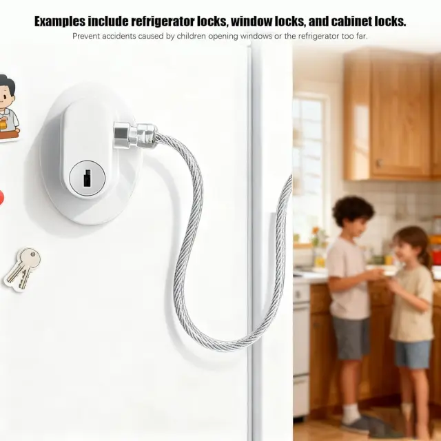 Enostavna namestitev: Prosimo, upoštevajte: to niso originalni deli. Hitra namestitev z lupljivim samolepilnim slojem omogoča pritrditev brez vrtanja ali orodja, kar je idealno za najemnike in družine. Očistite in posušite površino, odlepite zaščitni papir in trdno pritisnite. V vsakdanji uporabi zagotavlja zanesljivo varnost pred nenamernim odpiranjem hladilnika, omaric, zračnih friteuz, predalov, straniščnih pokrovov in pralnih strojev ter hkrati ohranja površine brez poškodb.