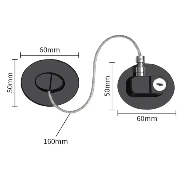 Samolepilna kombinacijska ključavnica za hladilnik (ovalna) – ABS in jeklena vrvica Black