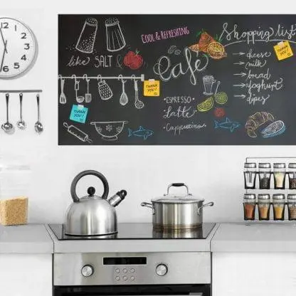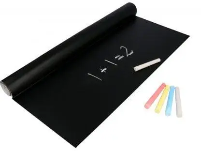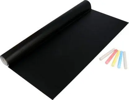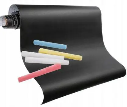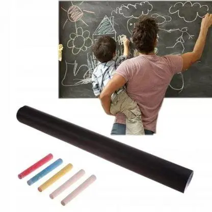 Samolepilna tabla s kredo 45 cm x 200 cm + 5 x barvne krede Popolna za otroško sobo, kuhinjo, predsobo ali vašo delavnico ali studio . Popoln kot planer, organizator tedna ali meseca.Zahvaljujoč moderni tabli bodo stene, pohištvo, vrata in drugi predmeti v vašem domu, po katerih vaš otrok rad slika, ostali v popolnem stanju. Brez sledi barvic, flomastrov ali flomastrov, ki jih lahko odstranimo le s pleskanjem stene. Z njo lahko prekrijete sprednjo stran omare, mizne plošče, kos stene ali celo hladilnik – da shranite nakupovalni seznam ali opravila!Tablo je zelo enostavno namestiti. Je samolepilna, potrebno je le odstraniti transportno folijo. Tabla deluje tako kot prava šolska tabla – pralno z vlažno gobo, krpo.