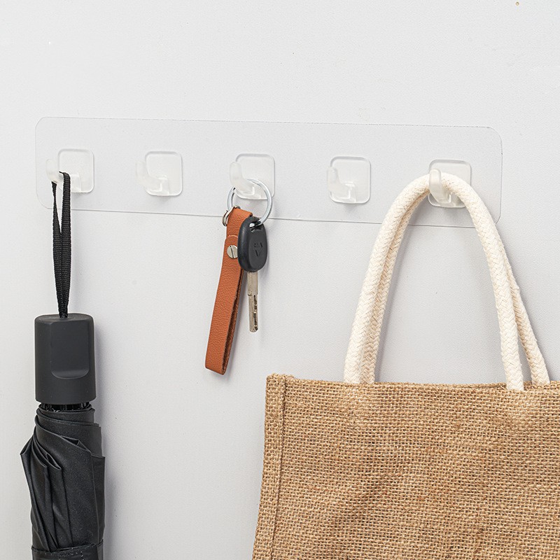 Ta prozoren kavelj je kot nalašč za obešanje dodatkov v kopalnici, kuhinji, spalnici ali povsod, kjer je to potrebno, zaradi česar je vaše vsakdanje življenje bolj organizirano in udobno. Kavelj je zasnovan tako, da na noben način ne poškoduje površine, kjer je pritrjen.