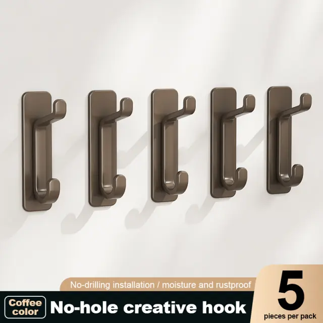 Samolepilni kavlji za obešanje, rjave barve, komplet 5 kosov coffee