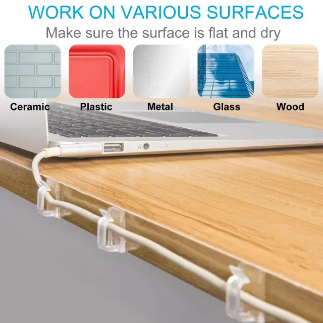 Širok spekter uporabe: sponke za kable so zelo uporabne za organiziranje različnih kablov, kot so omrežni kabli, računalniški kabli, USB kabli, TV kabli, božične lučke itd. Uporabljate jih lahko doma, na delovnem mestu ali v avtu.
