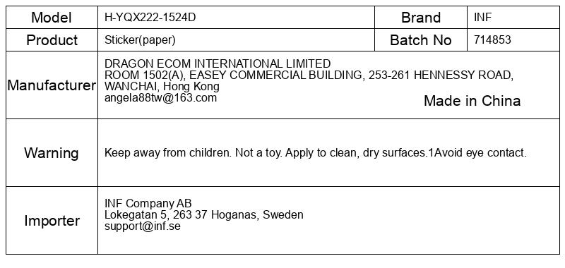 Hraniti izven dosega otrok. Ni igrača. Nanesite na čiste in suhe površine. Izogibajte se stiku z očmi.