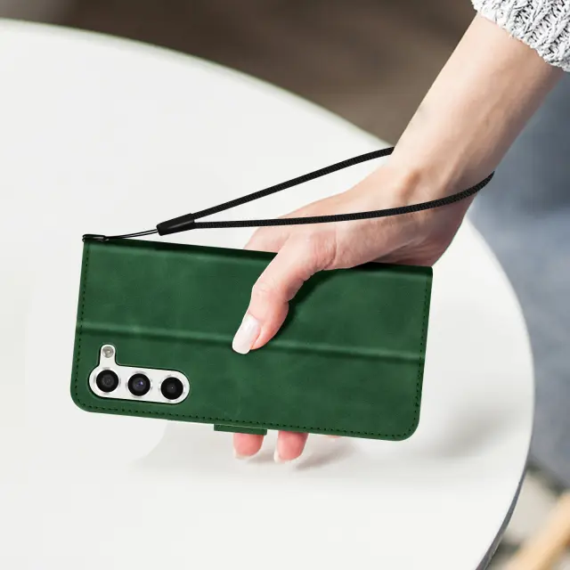 Samsung A34 5G preklopna denarnica in torbica s stojalom s pašckom za zapestje - zelena