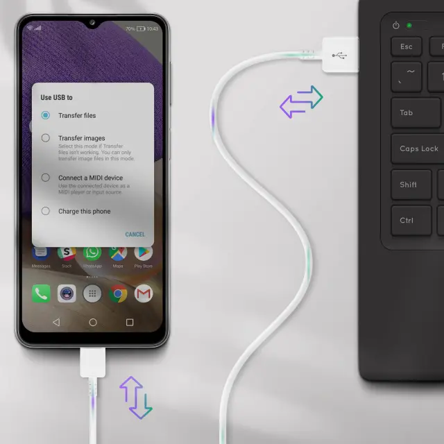 Originalni kabel Samsung USB v USB tipa C. Hiter prenos podatkov in hkratno polnjenje. Združljiv z vsemi napravami, opremljenimi z vrati USB tipa C. Lahko se poveže z računalnikom ali AC adapterjem.