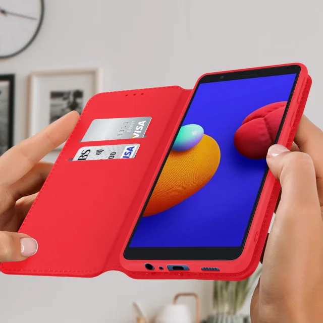 Samsung Galaxy A01 Core Folio Case Držalo za kartice in video držalo, magnetni preklop - rdec
