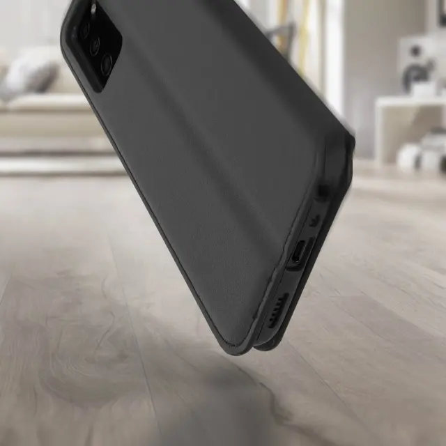Samsung Galaxy A03S magnetna preklopna torbica, držalo za kartice in video držalo iz umetnega usnja - crna