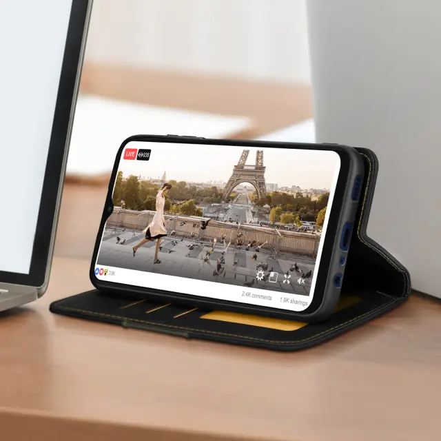 Samsung Galaxy A03s Silky Touch Wallet etui, stojalo za video - crna