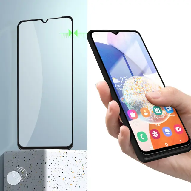 Ta folija za zaslon Samsung Galaxy A14 s crnim obrisom je izdelana iz prozornega in odpornega kaljenega stekla. Folija z indeksom trdote 9H, ki absorbira udarce in praske. Njegov oleofobni premaz proti prstnim odtisom nudi udobje pri uporabi.