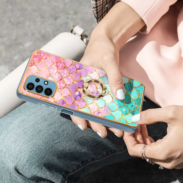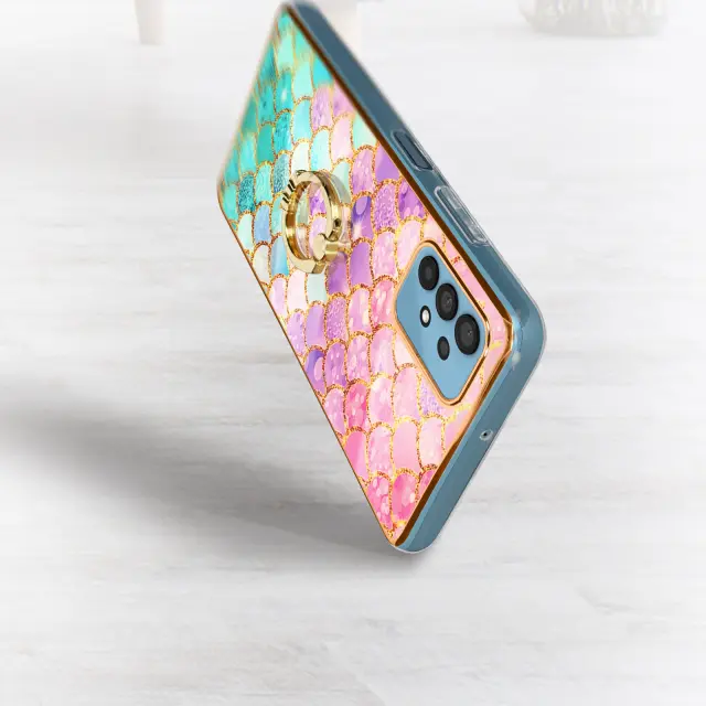 Ta ovitek za Samsung Galaxy A32 5G z vecbarvnim vzorcem želvovinastega oklepa doda mobilnemu telefonu edinstven in prefinjen pridih. Ima zadrževalni obrocek z ucinkom dragulja z kamencki za razkošen pridih. Prstan lahko deluje kot video podpora.