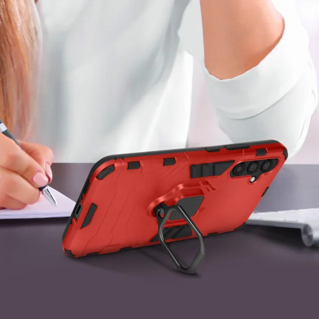 Samsung Galaxy A34 5G dvomaterial Ring Podporna torbica z magnetnim sistemom - rdeca