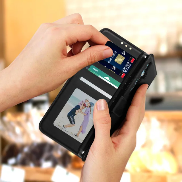 Samsung Galaxy A54 5G zašcitna preklopna denarnica in držalo za stojalo, s pašckom za zapestje - crna