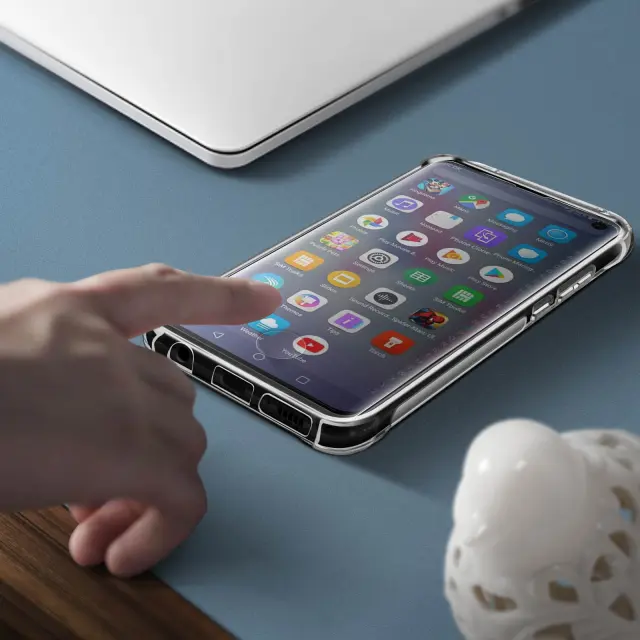 Premium zaščitni paket, sestavljen iz ovitka in folije, za Samsung Galaxy S10. Fleksibilna prevleka iz silikona, izjemno odporna na vsakodnevne praske. Folija iz kaljenega stekla za zaščito sprednje strani pametnega telefona. 360 ° zaščita: koti pokrova so ojačani za boljšo absorbcijo udarnih valov.