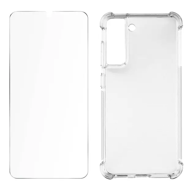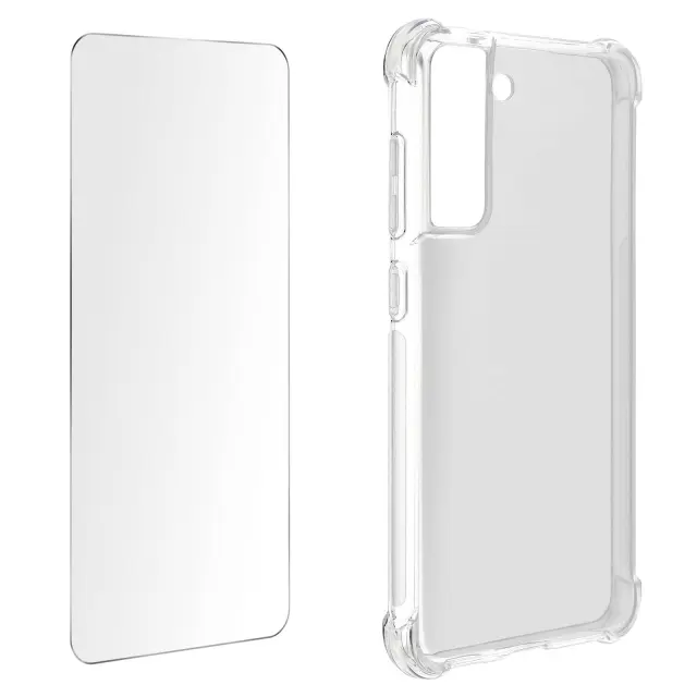 Ovitek za Samsung Galaxy S21 FE Kaljeno steklo. Integrirana prozorna zašcita spredaj-zadaj. Štirje vogali Galaxy S21 FE so zašciteni s 4 odbijaci. Steklo zaslona šciti mobilni zaslon, hkrati pa ohranja popolno preglednost.