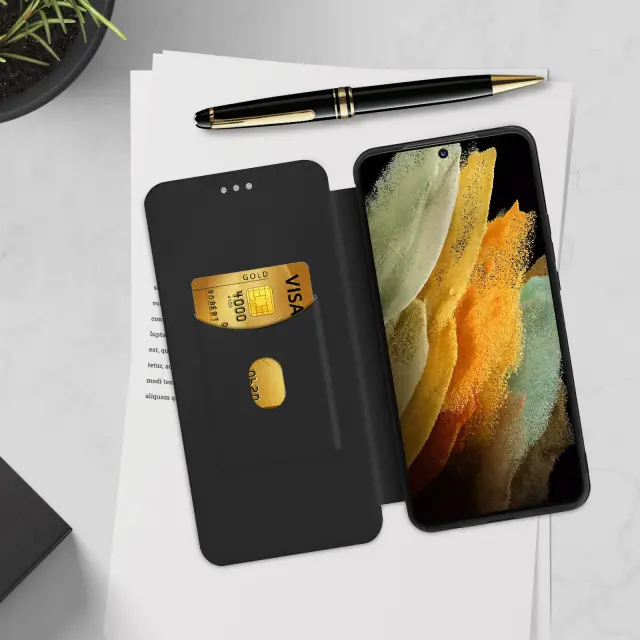 Zadnji pokrov, ki združuje dizajn z zaščito, posebej izdelan za Samsung Galaxy S21 Ultra. Priročna loputa, ki se spremeni v stabilno vodoravno oporo za prostoročno gledanje. Diskreten vgrajen predal za kartice, da bodo vaše osnovne stvari pri roki. Popolna zaščita s prilagodljivo nosilno strukturo, odporno na udarce in praske.