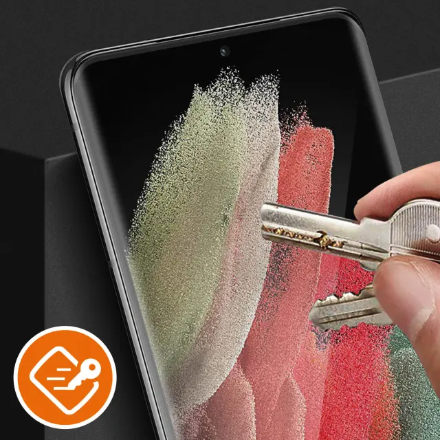 Zaščitna folija za zaslon, posebej predrezana za Samsung Galaxy S21 Ultra. Zahvaljujoč svojemu 3D ukrivljenemu robu zagotavlja zaščito vašega zaslona (vse do robov). Iz kaljenega stekla (trdota 9H), izjemno odpornega na udarce, praske in ostre predmete. Oleofobni premaz, odporen na prstne odtise in maščobe.