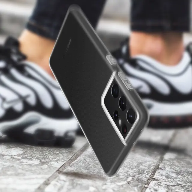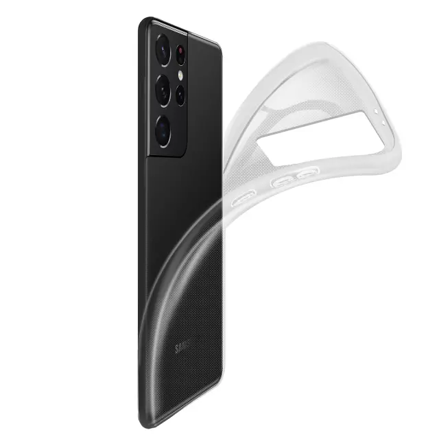 Zaščitna torbica posebej zasnovana za Samsung Galaxy S21 Ultra -. Učinkovito ščiti vašo napravo pred vsakodnevnimi udarci in praskami. Izdelan z odporno, fleksibilno silikonsko prevleko. Ultra tanka, lahka in diskretna zaščita.