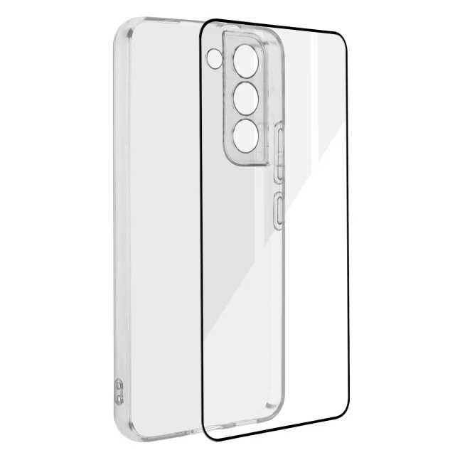 Samsung Galaxy S22 Plus 360° Protection Pack: mehka torbica iz kaljenega stekla s crnim obrisom - prozorna