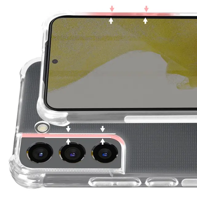 Samsung Galaxy S22 Premium Protection Pack popolnoma zašciti vaš mobilni telefon. Silikonsko ohišje z ojacanimi vogali, zaradi cesar je oblika mobilnega telefona vidna. Film iz kaljenega stekla 9H proti prstnim odtisom ohranja zacetne lastnosti zaslona.