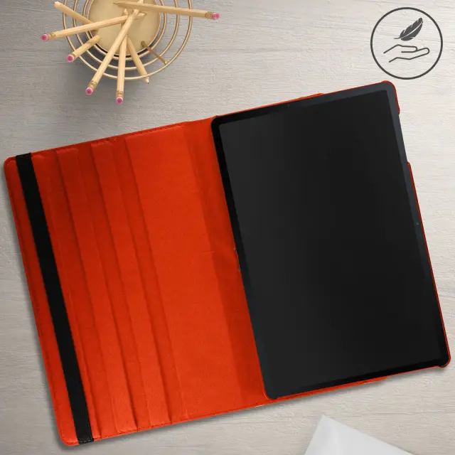 Rdec vrtljiv ovitek Samsung Galaxy Tab S7 FE, za optimalno zašcito vašega tablicnega racunalnika. Ta ohišje na preklop ima držalo, ki ga je mogoce obrniti iz ležecega v pokoncni nacin za idealen kot gledanja.