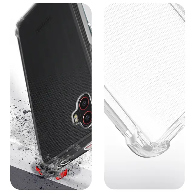 Premium zašcitni paket Samsung Galaxy Xcover 6 Pro popolnoma zašciti vaš pametni telefon. Ohišje z ojacanimi vogali, ki pušca vidno obliko mobilnega telefona. Film iz kaljenega stekla 9H proti prstnim odtisom ohranja zacetne lastnosti zaslona.