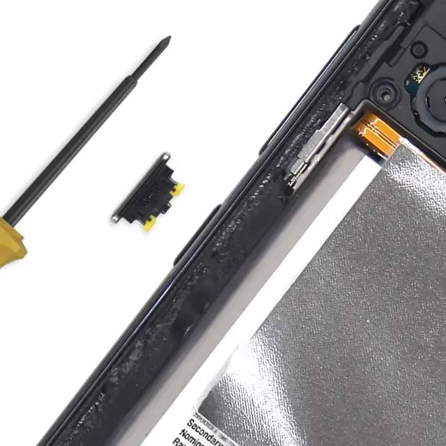 Uradni del servisnega paketa Samsung Service Pack, ki je enak tovarniško nameščeni komponenti v telefonu Galaxy A53. Obnovi funkcije vklopa/izklopa in zaklepanja zaslona. Nadomešča pokvarjen, manjkajoč ali popolnoma nedelujoč gumb.. Črna površina, ki ustreza prvotnemu videzu pametnega telefona.