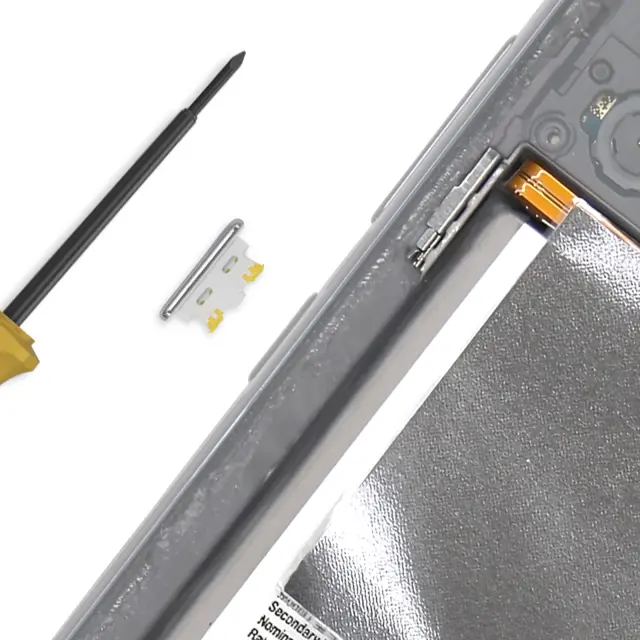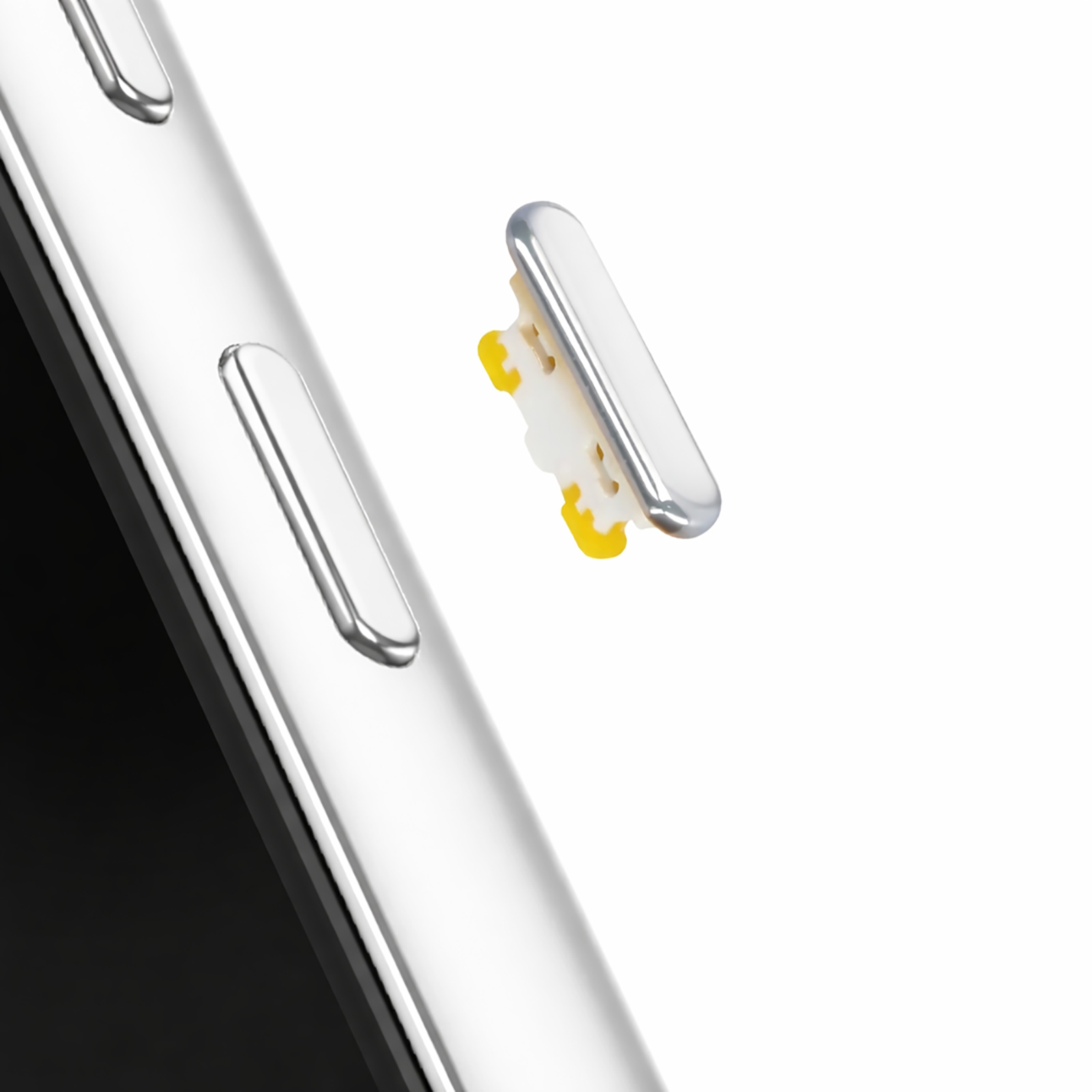Uradni del servisnega paketa Samsung Service Pack, ki je enak tovarniško nameščeni komponenti v telefonu Galaxy A53. Obnovi funkcije vklopa/izklopa in zaklepanja zaslona. Nadomešča pokvarjen, manjkajoč ali popolnoma nedelujoč gumb.. Bela površina, ki se ujema z originalnim videzom pametnega telefona.