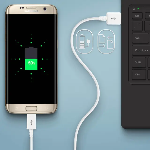 Original Samsung micro-USB kabel. Omogoča ponovno polnjenje naprave in/ali sinhronizacijo njenih podatkov z računalnikom. Združljivo z napravami, opremljenimi z mikro-USB priključkom. Dolžina 1 meter.