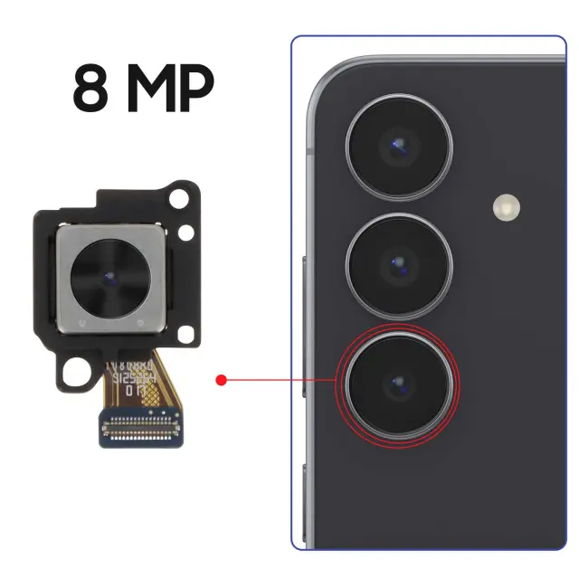 Združljiv fotoaparat Samsung Galaxy S25 FE s 3-kratno optično povečavo. Del servisnega paketa s funkcijami, prilagojenimi modelu. Uporablja se za zamenjavo okvarjenega modula teleobjektivov. Predhodno nameščeni priključki za enostavno namestitev.