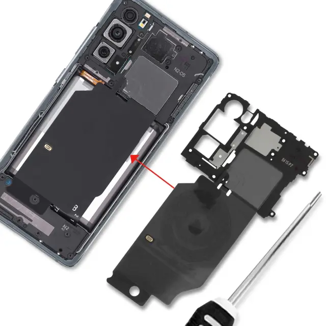 Namizni prt NFC in notranja slušalka za Galaxy S20 FE 5G ponovno vzpostavita NFC, polnjenje QI in zvok klicev. Originalni del servisnega paketa Samsung, ki je enak tovarniško vgrajenemu delu za popolno združljivost. Omogoča brezstično plačevanje, skeniranje oznak in takojšnje seznanjanje NFC. Polnilna tuljava QI, skladna s standardi, za stabilno in varno brezžično polnjenje.