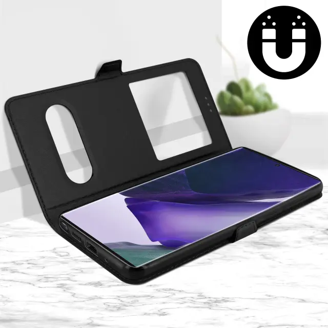 Samsung Galaxy Note 20 Ultra etui za zašcito mobilnega telefona. Ta ovitek za Galaxy Note 20 Ultra vam omogoca, da imate zaslon v vidnem polju in sprejemate klice zahvaljujoc dvema integriranima okencema. Samsung Note 20 Ultra popolna zašcita s funkcijo podpore