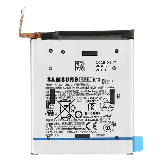 Baterija, zasnovana izključno za Samsung Galaxy S25 FE. Nadomestna baterija v enakem formatu in z enakim priključkom kot originalna baterija. Ploščata litij-ionska celica z zatesnjenim aluminijastim ohišjem. Vnaprej nameščena priključna fleksibilna podloga za neposredno povezavo z matično ploščo.