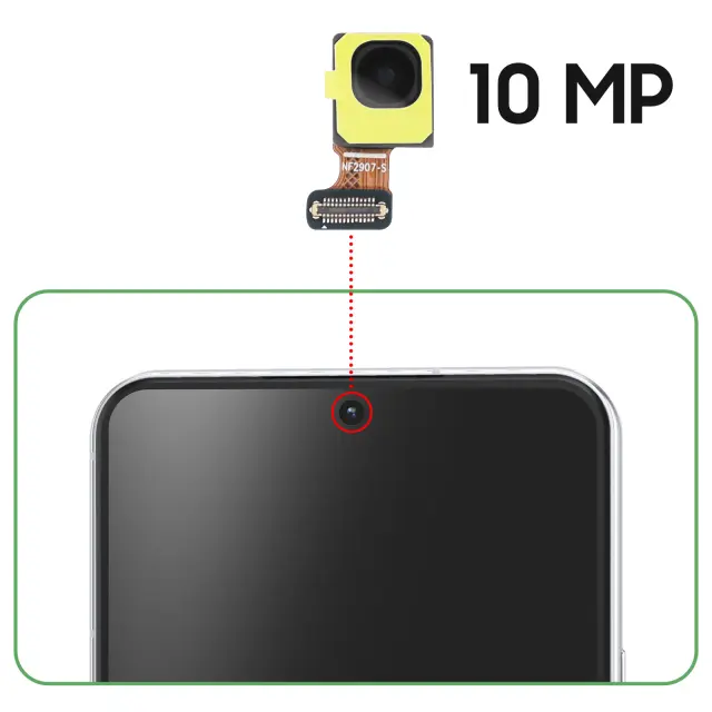Uradni Samsungov originalni servisni paket za izvirno kakovost. Z njim lahko nadomestite okvarjeno sprednjo kamero in obnovite ostre selfije.. Odpravlja zameglitev, razmaz, težave z ostrenjem ali sesutje aplikacije fotoaparata.. Združljiv s telefonoma Samsung Galaxy S22 in S22 Plus, primeren za ciljno usmerjena popravila sprednjega modula.