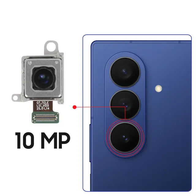 Originalna Samsungova teleobjektivna zadnja kamera 10 MP, združljiva s telefonom Galaxy Z Fold7. 3× optični zoom za fotografiranje na daljavo brez izgube digitalnega signala. Vgrajeno samodejno ostrenje PDAF za hitro in natančno ostrenje. Optična stabilizacija OIS za zmanjšanje zamegljenosti.