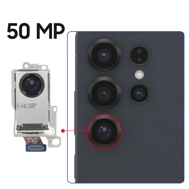 Izdelek ponuja visoko zmogljivo 5-kratno optično povečavo za Galaxy S25 Ultra s senzorjem 50 MP, ki je enak originalnemu.. Periskopski modul za snemanje ostrih podrobnosti tudi na veliki razdalji. Kakovost fotografije je obnovljena zaradi uradnega dela, ki je enak originalnemu delu proizvajalca. Hitra in enostavna namestitev zaradi vgrajenega priključnega kabla.