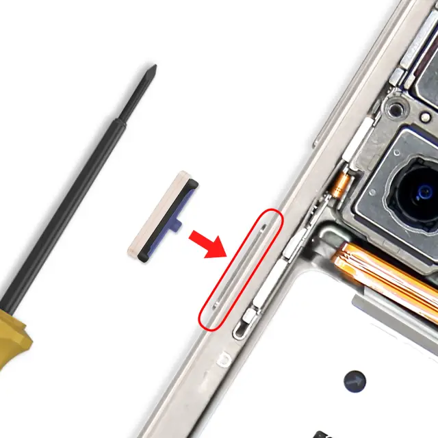 Uradni Samsungov šampanjsko roza gumb za vklop za Galaxy S25 in S25 Plus. Originalni del servisnega paketa za optimalno kakovost in združljivost. Učinkovito nadomesti okvarjen gumb za vklop/izklop. Natančno prileganje in šampanjsko rožnata obdelava za videz, ki je enak izvirniku.