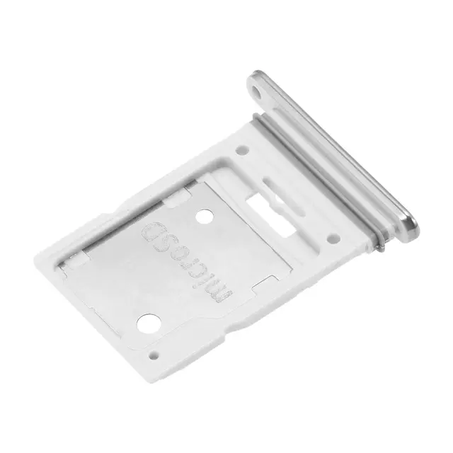 Originalni Samsungov predal za SIM, združljiv s telefonom Galaxy A53, oblika enaka originalnemu delu. Hibridna reža za dvojno nano SIM ali nano SIM in microSD, odvisno od konfiguracije modela. Notranja kovinska plošča zagotavlja, da se vstavljene kartice varno držijo in stabilno vstavijo.. Vgrajene oznake SIM1 in microSD za jasno pozicioniranje in brezhibno montažo.