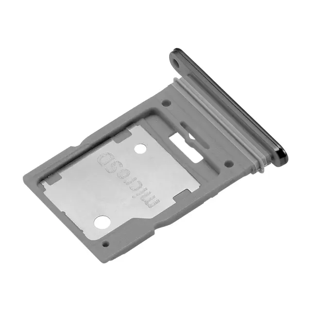 Originalni Samsungov predal za SIM, združljiv s telefonom Galaxy A53, oblika enaka originalnemu delu. Hibridna reža za dvojno nano SIM ali nano SIM in microSD, odvisno od konfiguracije modela. Notranja kovinska plošča zagotavlja, da se vstavljene kartice varno držijo in stabilno vstavijo.. Vgrajene oznake SIM1 in microSD za jasno pozicioniranje in brezhibno montažo.