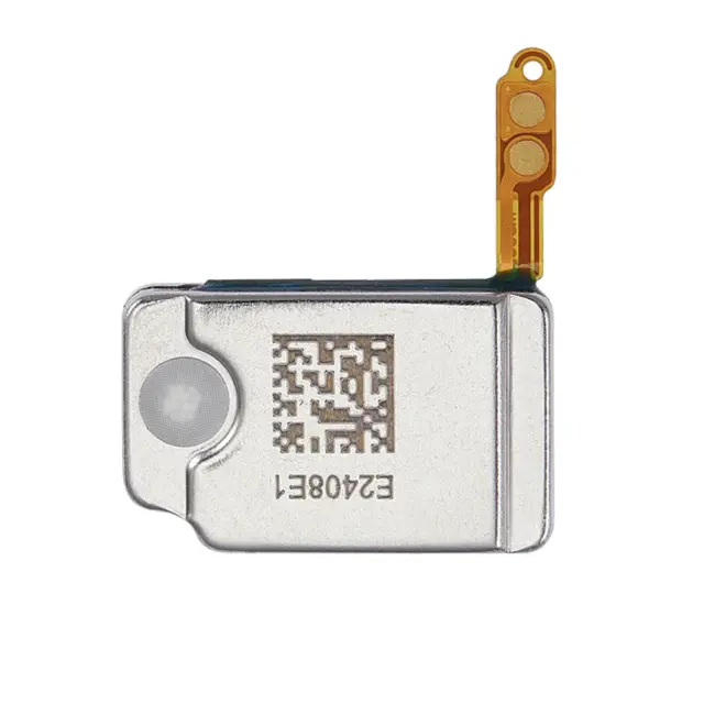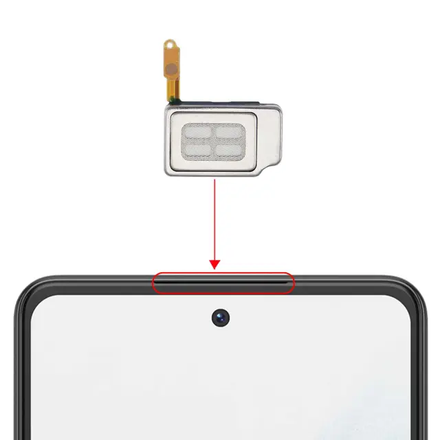 Originalni notranji zvočnik Samsung Service Pack za Galaxy A53, ki zagotavlja strogo tovarniško zamenjavo delov. Kompaktni zgornji modul za slušalke s kovinskim ohišjem, ki tvori zaprto akustično komoro. Difuzijska rešetka, vgrajena neposredno v ohišje, za prednji izhod zvoka. Kratka prožna podloga z vgrajenimi kovinskimi kontakti za notranjo povezavo brez prilagajanja.